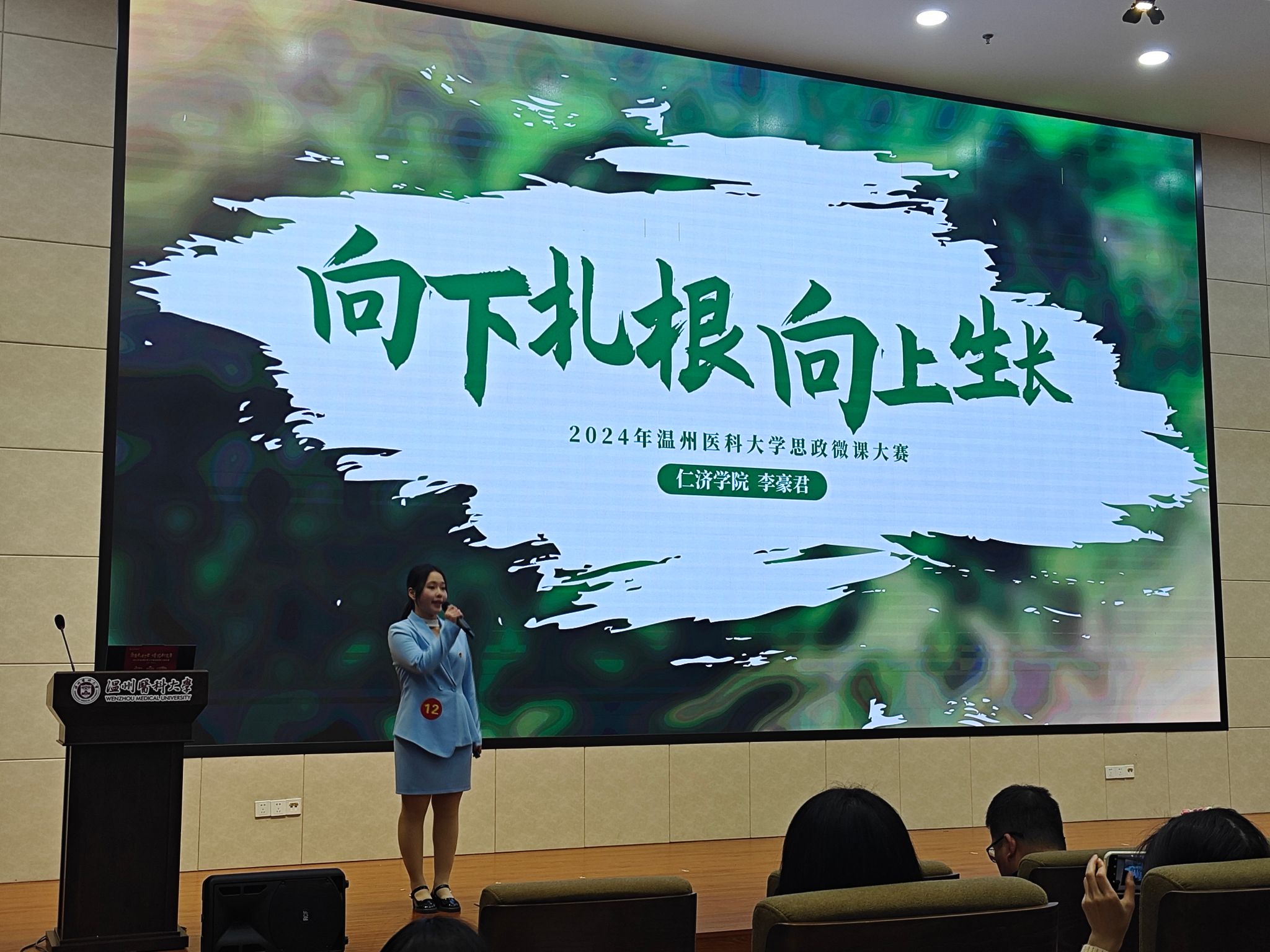 3月20日,2024 年度温州医科大学思政微课大赛决赛于茶山校区生物医药科研楼二楼报告厅举办。我院刘琦老师与李豪君同学从初赛各学院及附属医院的50名优秀选手中脱颖而出,经过校团委组织专家评委和大众评委综合评选,二人入围校级决赛。