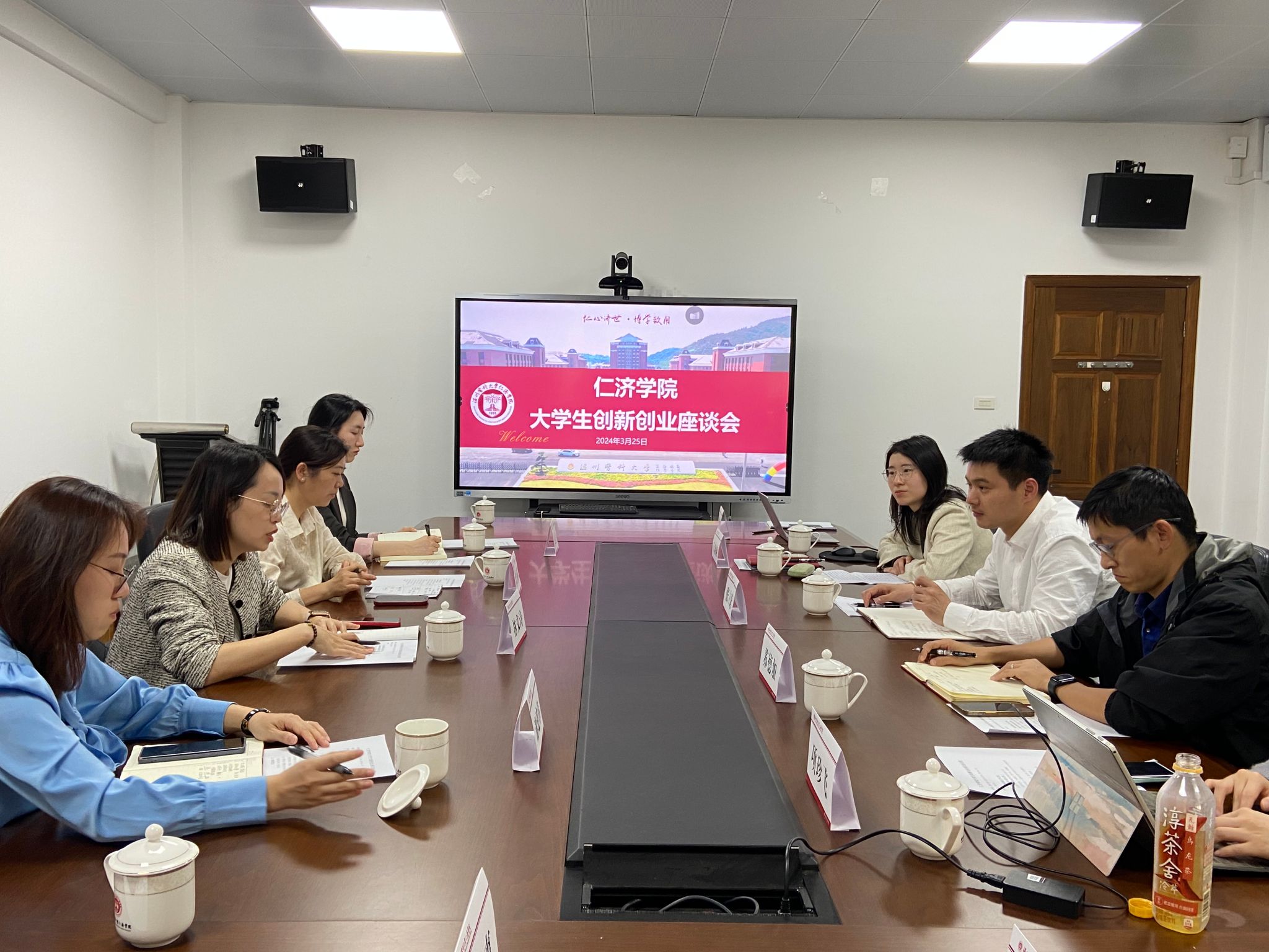 3月25日下午,学院在7A113会议室召开仁济学院大学生创新创业座谈会,邀请学校团委书记林文诗、学校创新创业教育学院副院长曾春燕、学校团委副书记谢建伟等老师莅临指导。学院党委书记张立康团委书记王翩翩,学工办副主任项珍飞以及负责相关工作的老师、各项目学生负责人参加会议。