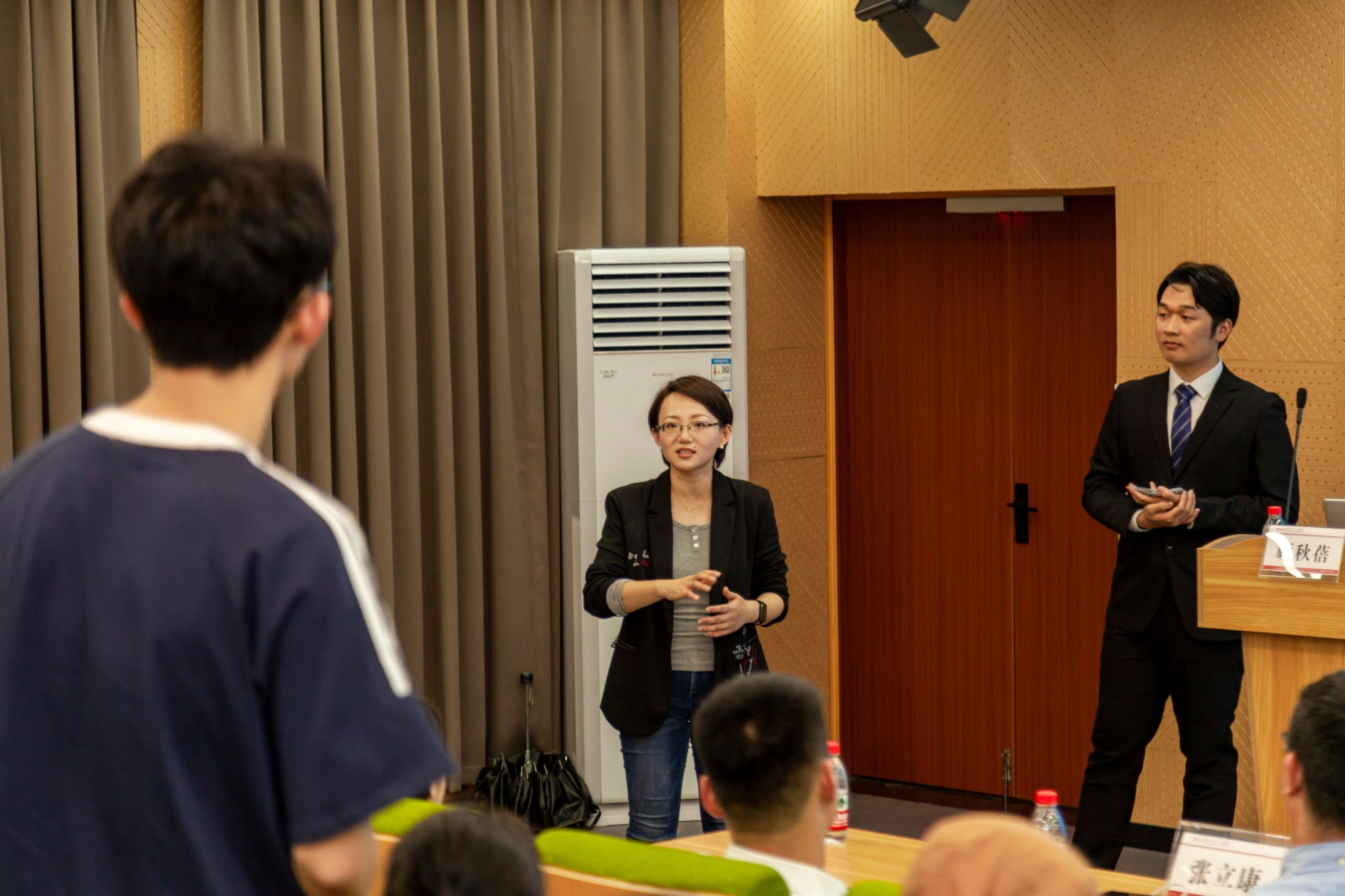 2024年4月25日晚,三亿在茶山校区6A107报告厅隆重举办第二期“仁学有约”名家大讲坛活动。本次讲坛特邀上海外国语大学的顾秋蓓副教授,以“演讲的艺术与英语学习”为题,为师生们带来了一场精彩纷呈的英语演讲知识盛宴。仁济学院副院长戴建春、党委副书记张立康、外国语学院章艳乐副院长以及众多校内外老师共同出席了此次活动。活动伊始,2023年“外研社•国才杯”英语演讲大赛全国十强获得者王浩天同学以其幽默风趣的英语主持,为现场营造出了轻松愉快的氛围,让同学们沉浸在英语演讲的魅力之中。