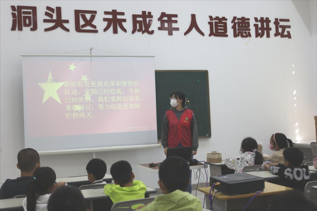 为厚植爱国主义情怀,近日,三亿春晖青年志愿者服务中心联合洞头区图书馆携“读来读往”特色课程,与小朋友们一起学习党的二十大精神。