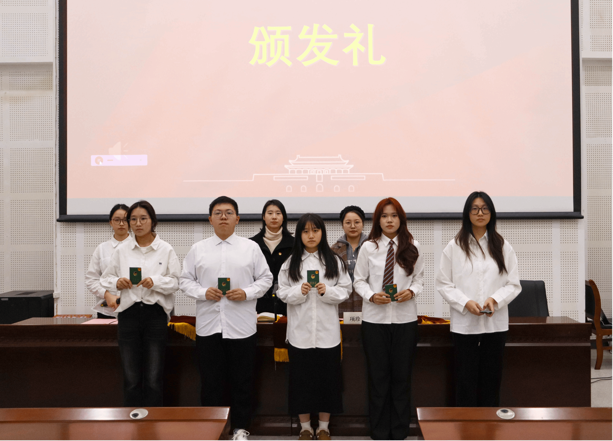 仪式在庄严的国歌声中拉开帷幕,全体师生肃立齐唱,展现出青年一代对党和祖国的深情厚爱与崇高敬意。学院团委副书记项珍飞宣读了新团员名单,由学院团委书记王翩翩、团委副书记项珍飞为新团员佩戴团徽、颁发团员证。