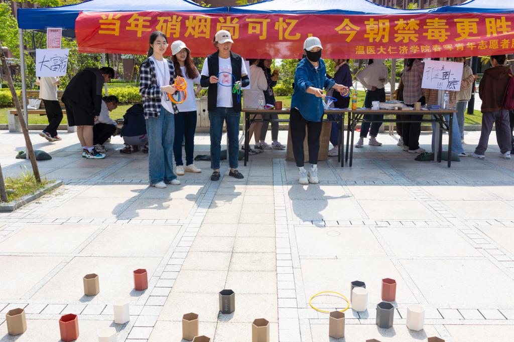 4月22日,我院春晖青年志愿者服务中心在滨海校区内展开了一系列禁毒宣传游戏活动,如捣毒窝、禁毒飞行棋、谁是卧底等等,以更好加深同学对毒品的认识。活动现场,志愿者将场地合理规划为宣传手册分发区、游戏区与奖品领取区,积极鼓励组织同学们一起参与禁毒宣传小游戏。捣毒窝学习“识毒、辨毒”,禁毒飞行棋体验“边跳棋边答题”,谁是卧底进行“警察”与“毒贩”的拉扯较量。在志愿者的从旁协助下,同学们在轻松愉悦的游戏氛围中收获了禁毒知识。