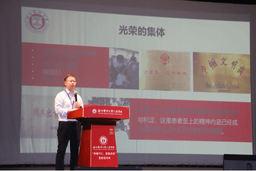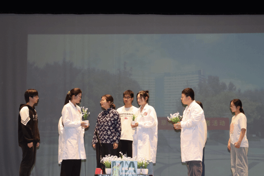 4月19日,在仁济学院滨海校区的竖医冠仪式活动将系列活动推向高潮。仪式上春晖青年志愿者服务中心原创情景剧《生命的奇迹》,艺术再现"兰小草"匿名行医十五载的动人故事;温医大医管处副处长、温医大附一院急诊科洪广亮教授结合救治案例,阐释"德术并重"的现代内涵;随后,洪老师为医学生代表扣上白大褂上的第一颗纽扣,寄托了他对医学新生的殷切嘱托和期望。最后,全体医学生在医学誓言宣誓中完成身份转化,洁白医袍与青春誓言交相辉映,勾勒出新时代医学生的精神图谱。