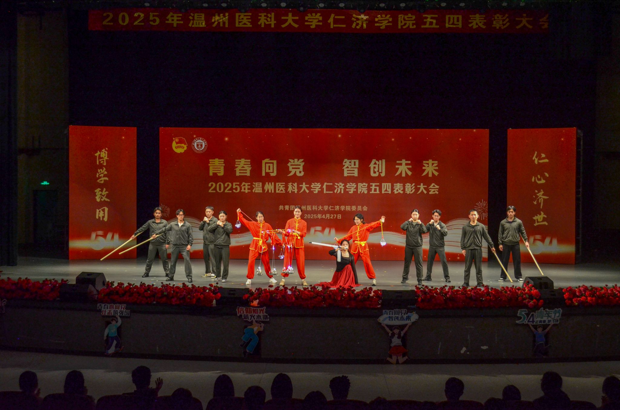 “光荣啊,中国共青团!”在与会青年激情澎湃的歌声中,这场融汇艺术与思政、人文与科技的青春盛典圆满落下帷幕。此次五四表彰大会暨艺术思政展演既是对五四精神的传承与弘扬,激励广大青年以先进典型为榜样,勇担时代使命;也通过科技与艺术的创新融合,为青年成长搭建多元平台,展现了新时代青年在科技浪潮与人文滋养中迸发的活力。活动引导青年将个人理想融入强国实践,以青春之力续写时代新篇,为仁济学院人才培养和社会发展注入了蓬勃动力。