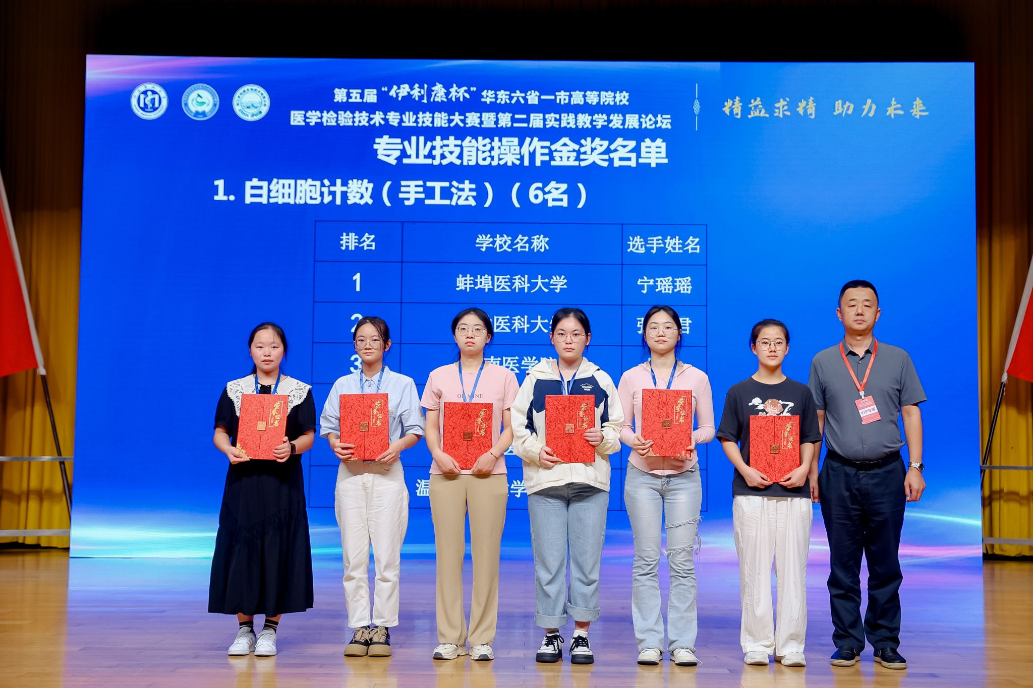 为提高医学检验技术教育教学水平,强化专业学生基本技能训练和创新意识,9月28日至29日,第五届“伊利康杯”华东六省一市高等院校医学检验技术专业技能大赛在福州举行。来自蚌埠医科大学、上海交通大学医学院、东南大学、江苏大学、福建医科大学等29所高校近120名学生参加本次大赛。经过两天紧张激烈地角逐,我院参赛选手王扬惠获专业知识竞赛金奖和专业技能操作比赛(白细胞计数)金奖,华心慧、王扬惠、丁泉尹、邵智慧获专业技能赛团体二等奖。