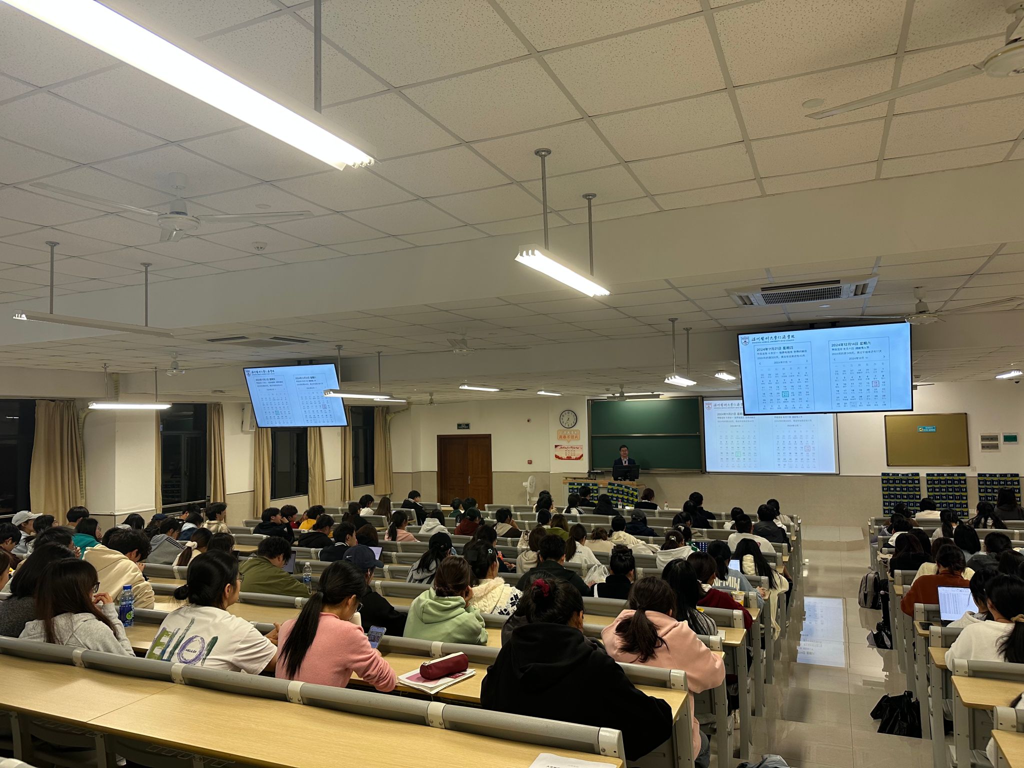 为帮助学生更好地备战2024年下半年大学英语等级考试,提升英语综合能力,11月22号晚上,一场备受瞩目的四六级讲座在1301教室激情开讲。此次讲座由仁济学院副院长戴建春主讲,旨在为同学们拨开四六级考试的迷雾,提供科学高效的备考策略。朋辈分享员娄辰同学、叶佳树同学也分享了四六级高分心得以及考试技巧。
