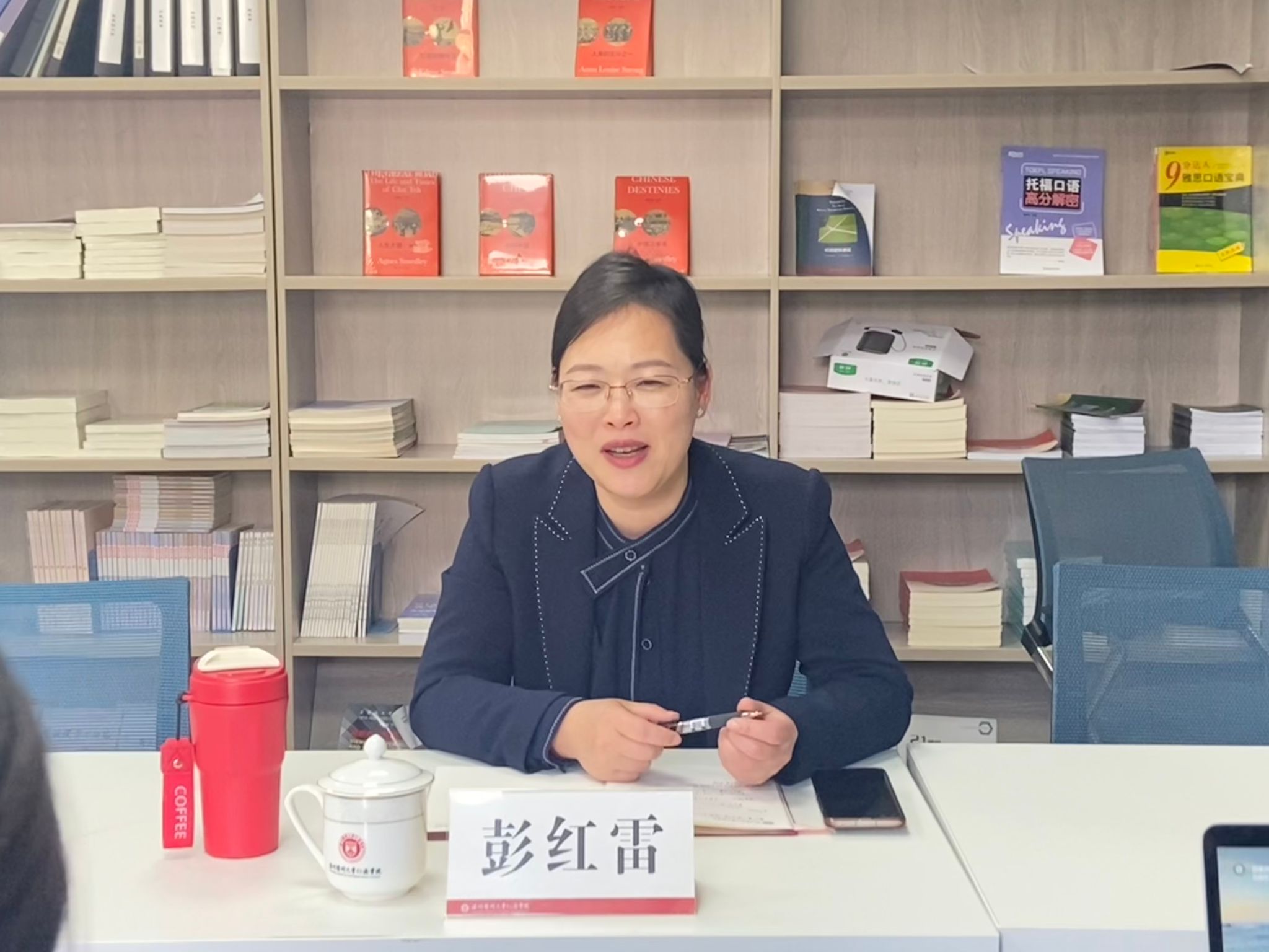 此后,彭红雷书记和与会党员同志进行了深入的座谈交流。与会党员纷纷发言,围绕教学质量提升、廉洁文化建设、对外交流合作、党员干部成长、校园文化建设等话题畅所欲言,提出了许多宝贵的意见和建议。彭书记就党员们关心的问题给予了积极回应,并就进一步加强支部建设、创新党建工作方法等方面提出了具体要求和指导意见。
