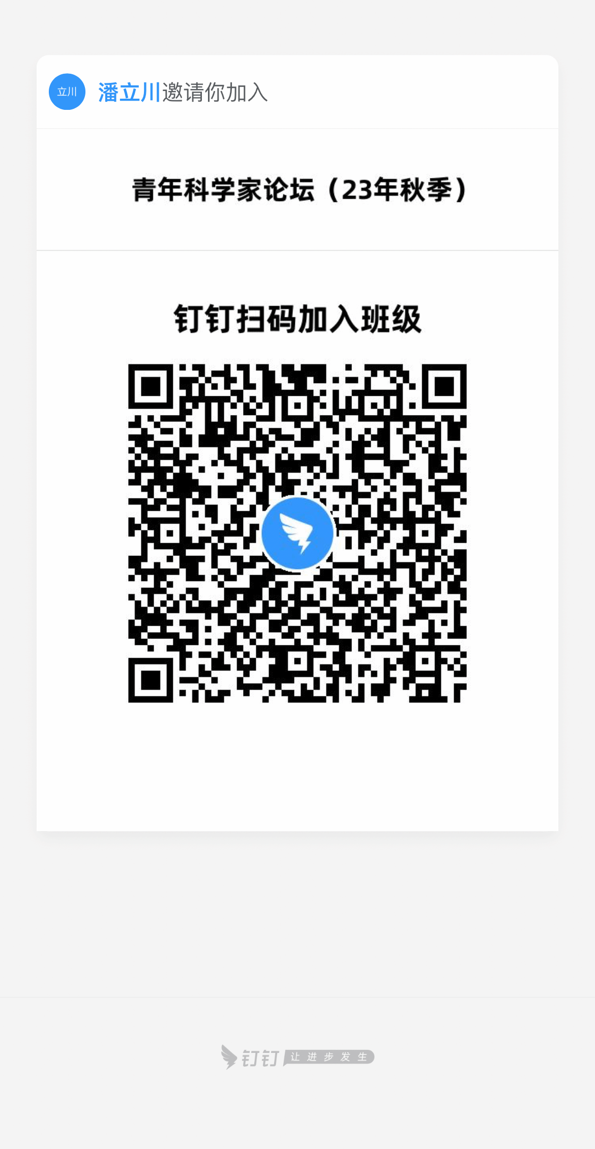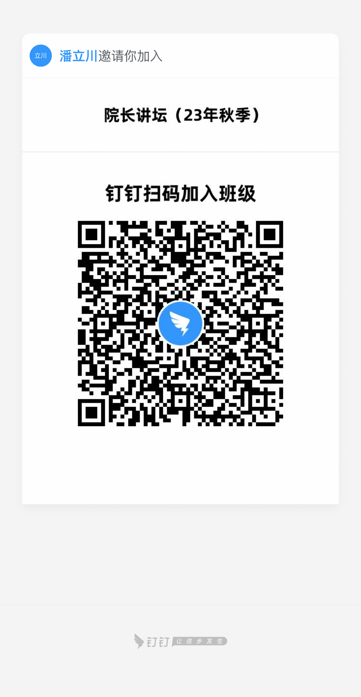 因选课学生来自不同年级专业,任课老师需建立课程联系班级群,以便任课教师在群中发布课程消息。选修《院长讲坛》和《青年科学家论坛》线下讲座课程的学生需钉钉扫码入群。(详见附件2