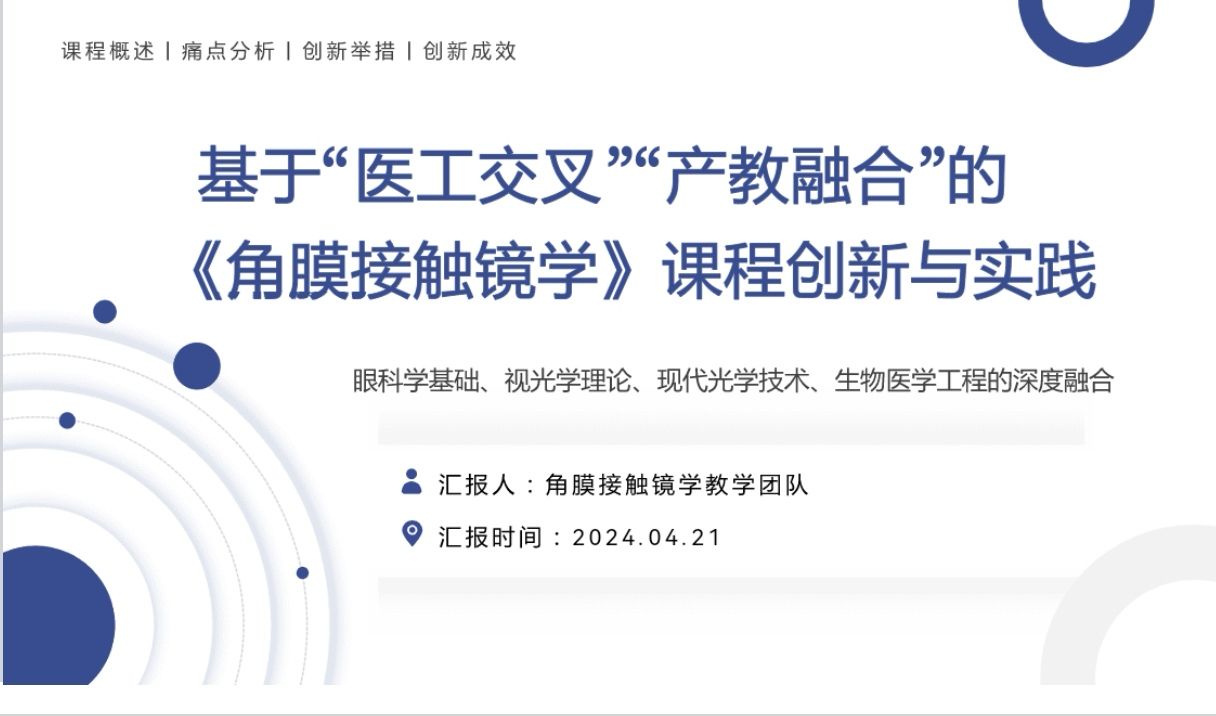 我院高度重视教师教学创新大赛筹备工作,自2023年11月正式启动以来,联合校教学发展中心组织了校级比赛并邀请了校内外专家开展线上线下精准培训、专项指导,共同提升参赛教学团队特色凝练,推荐正高组、副高组、中级及以下组共计6个教学团队参加省级比赛。其中2个教学团队经过网络评审进入现场决赛,毛欣杰教授领衔的《角膜接触镜学》课程团队荣获省一等奖,熊晶晶教授领衔的《管理学原理》荣获省二等奖。