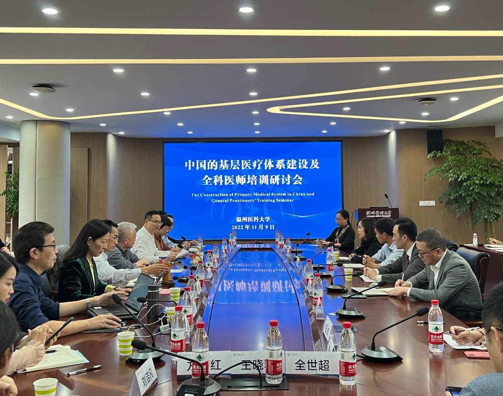 11月9日,温医大“中国的基层医疗体系建设及全科医师培训研讨会”在同心楼三楼会议室举行。会议邀请到了来自美国纽约西奈山医学中心教授林锦作专题报告,学校副校长曹建明,校党委委员、教务处处长朱雪波出席会议,学校教务处、仁济学院、继续教育学院、附属医院全科骨干师资、苍南县卫生健康局及苍南县人民医院等参会。附属衢州医院执行院长李章平主持会议。