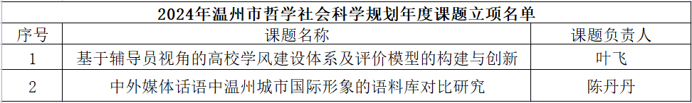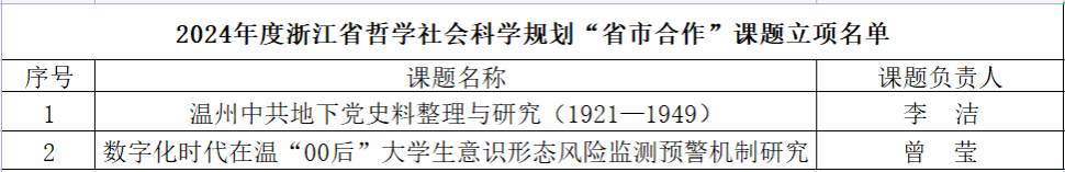 此外,温州市社会科学界联合会发布了《三亿(中国)2024年度温州市哲学社会科学规划年度课题立项名单的通知》,我院也有两个项目成功获立项。