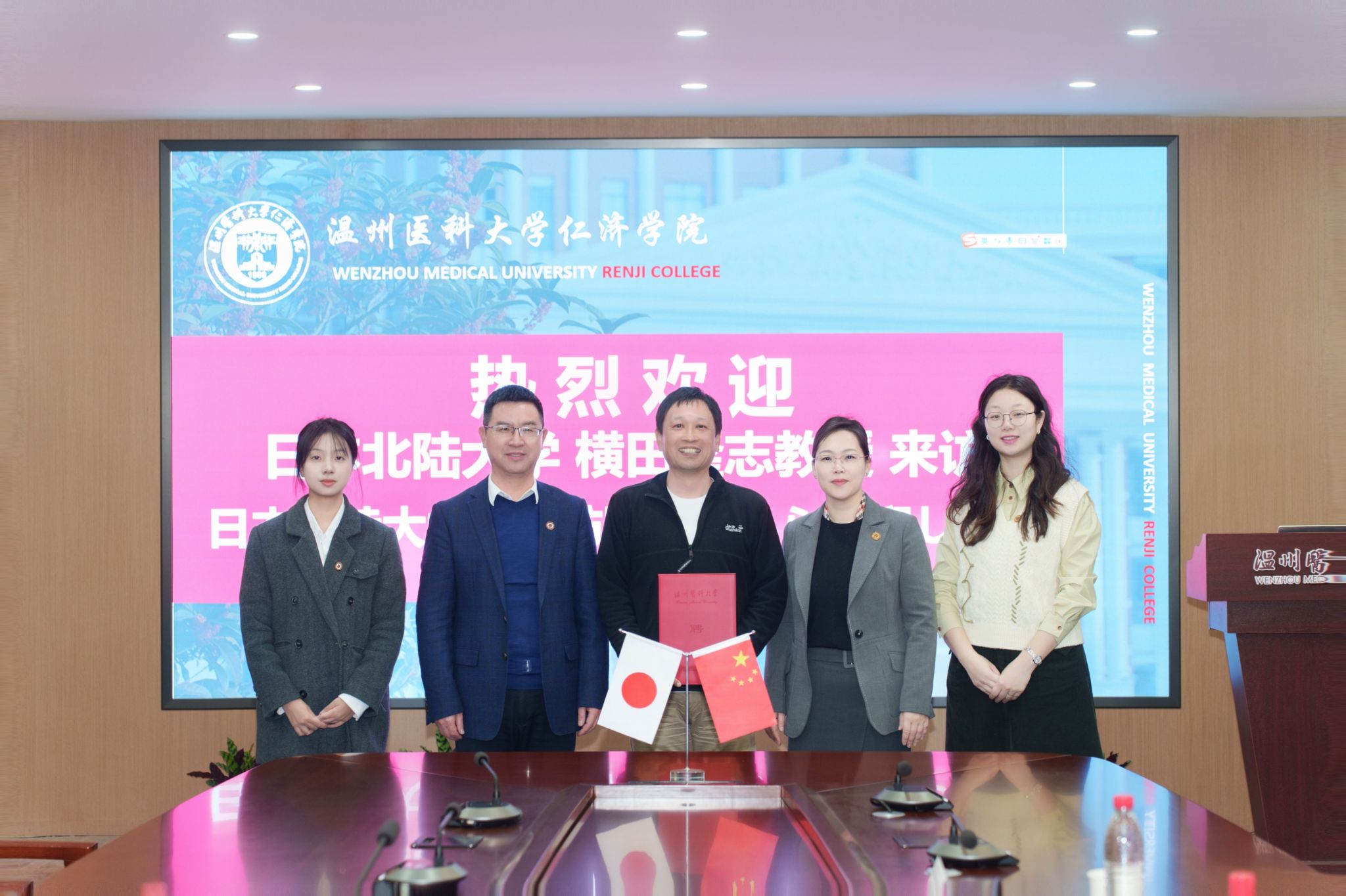3 月 3 日上午,横田隆志教授与仁济学院党委书记彭红雷、副院长戴建春在茶山校区进行了交流。会上,彭红雷书记对横田教授的到来表示欢迎,对两校历年来的合作成果表示肯定。戴建春副院长向他介绍了院校国际合作交流情况。最后,彭红雷书记为他颁发客座教授聘书,标志着两校合作关系的进一步巩固。