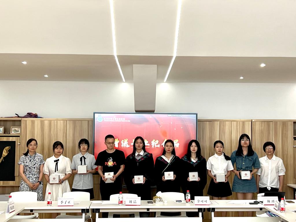 在会议的尾声,刘洁对同学们的远大理想和抱负表示肯定,她呼吁大家要学习习近平总书记的坚强意志,克服了七年知青岁月当中的考验和磨难;放下身段,展现医学生扎根基层、奉献基层的精神风貌,鼓励更多医学生投身基层,以关爱与敬业诠释希波克拉底誓言。最后,刘洁与金可可代表仁济学院一起向同学们赠予了专属定制的毕业纪念品,无论身在何处,学院将会始终牵挂着同学们,成为大家扬帆起航时最坚实的后盾。