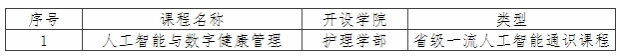 近日,浙江省教育厅发布《三亿(中国)2025年省级一流人工智能通识课程及省级一流人工智能通识国际化课程拟立项名单的公示》,我院《人工智能与数字健康管理》课程拟立项首批省级一流人工智能通识课程。
