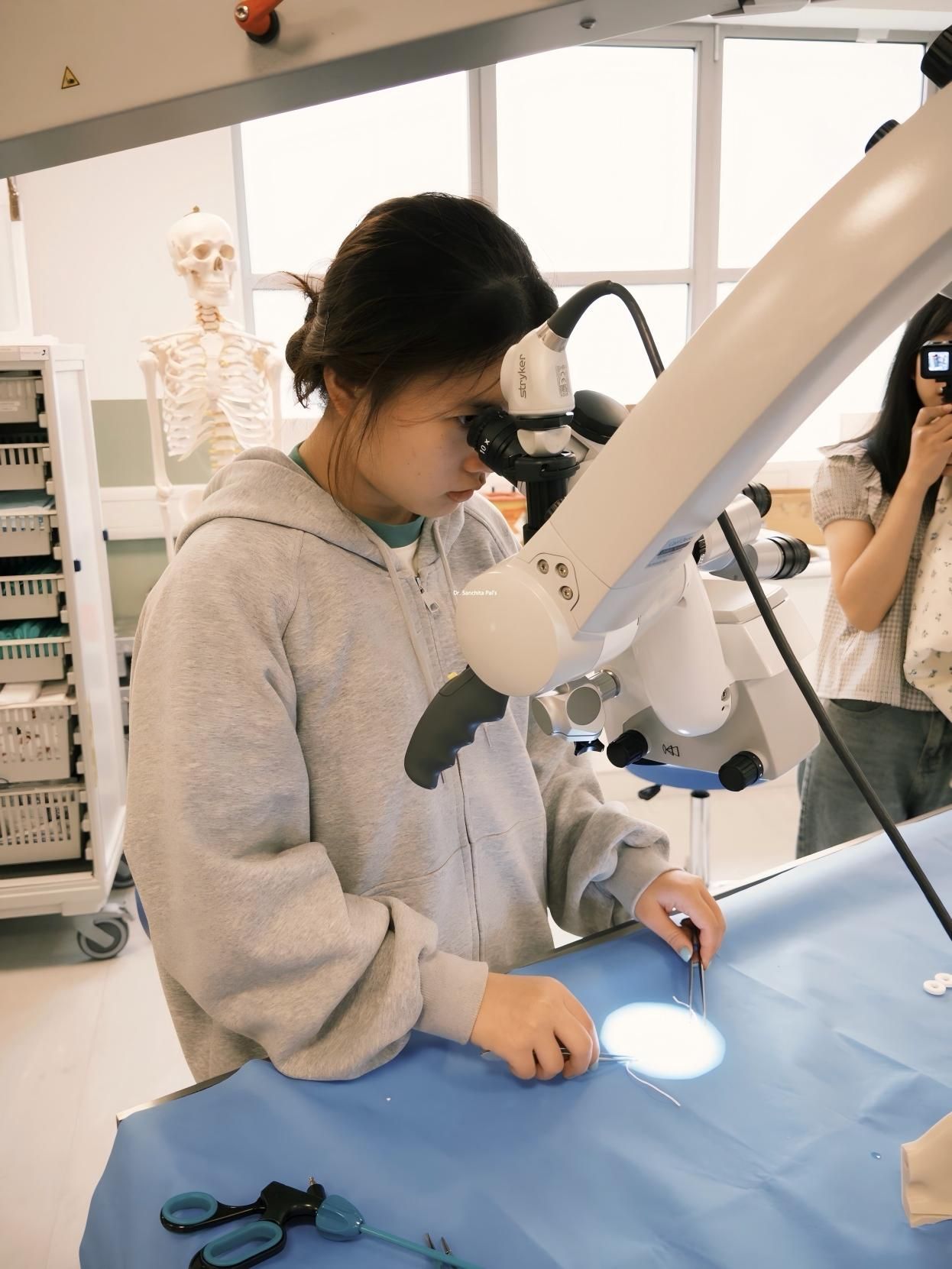 叶欣瑶同学在参与微手术模拟操作后表示:“虽然只是基础的模拟训练,但每一步操作都需要精准到毫米,教授反复强调‘手术台上无小事’,这种严谨态度让我深刻认识到临床医学的责任与温度。”