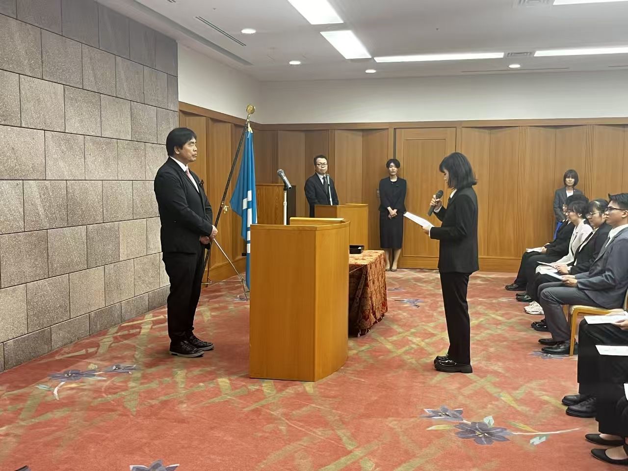 与此同时,更值得骄傲的是,参与2025年日本北陆大学2+2项目的仁济学子陈怡欣同学凭借优异的学习表现,被授予石川县奖学金,并作为北陆大学代表,向石川县知事馳浩致感谢词,展现仁济学子的专业素养与国际风采。