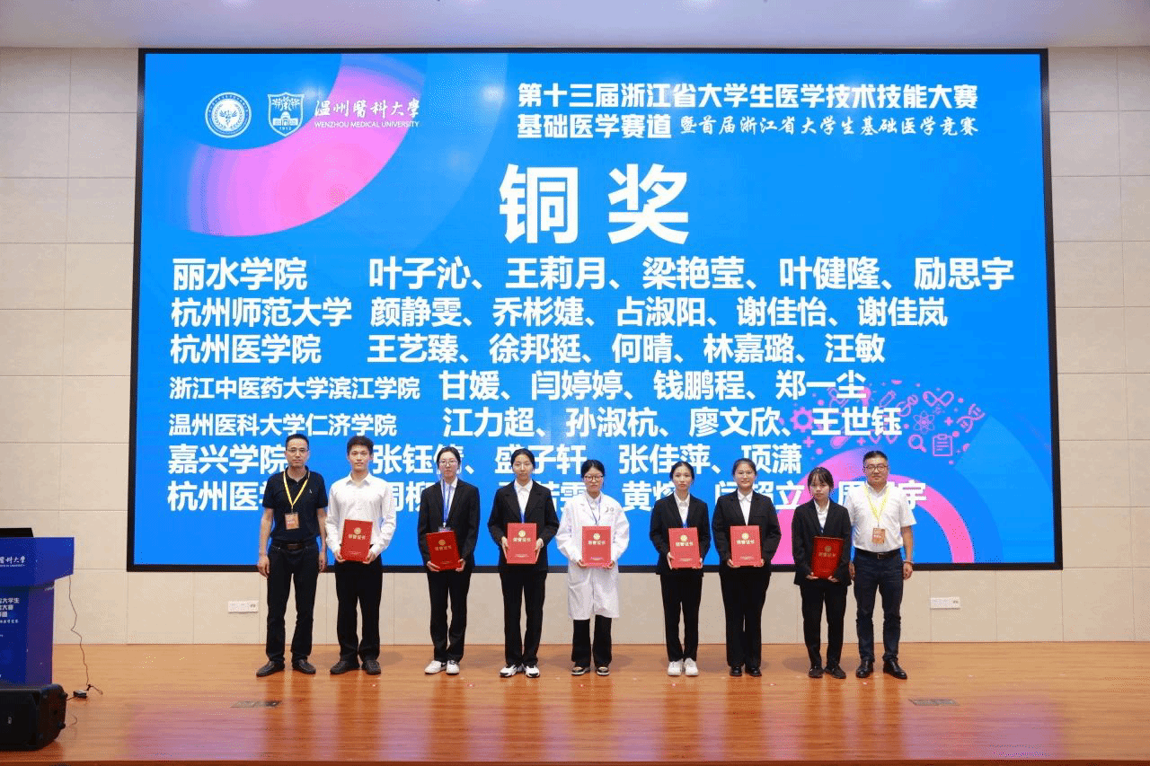 11月4日,第十三届浙江省大学生医学技术技能大赛基础医学赛道暨首届浙江省大学生基础医学竞赛在温州医科大学举行。我院两支队伍与来自全省9所高校29支队伍共131名队员同台竞技,最终斩获“两铜”。