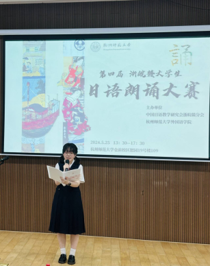 2024年5月25日下午,“第四届浙皖赣大学生日语朗读比赛”在杭州师范大学仓前校区隆重举行。本次大赛由中国日语教学研究会浙皖赣分会和杭州师范大学共同主办,是一次面向浙皖赣地区高校日语专业的重大比赛。