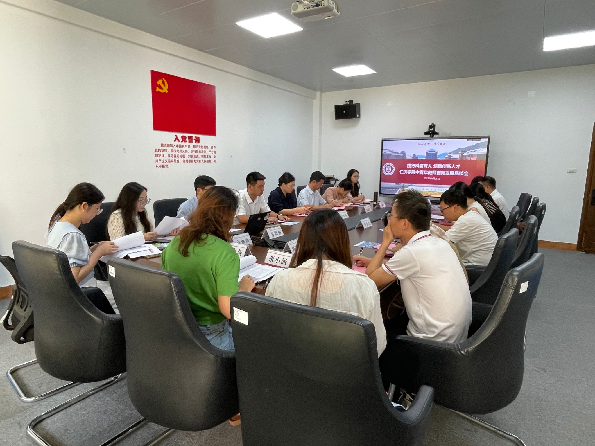 为深入践行科研育人理念,激发中青年教师创新活力,构建协同育人新格局,仁济学院中青年教师创新发展恳谈会于9月25日下午在茶山校区7A113会议室成功举办。学院党委书记彭红雷、副院长戴建春等领导出席,各相关职能部门负责人、创新创业导师代表、各系辅导员及中青年教师代表齐聚一堂,共话创新人才培养大计。会议由学院党委副书记张立康主持。