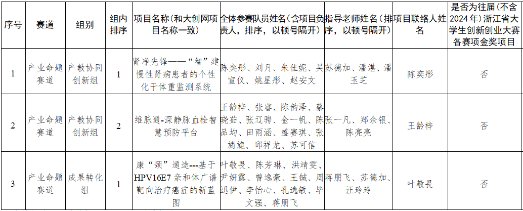 根据浙江省竞赛组委会通知,经项目自主申报,学部审核,拟推荐参加省赛产业赛道。现将名单公示如下: