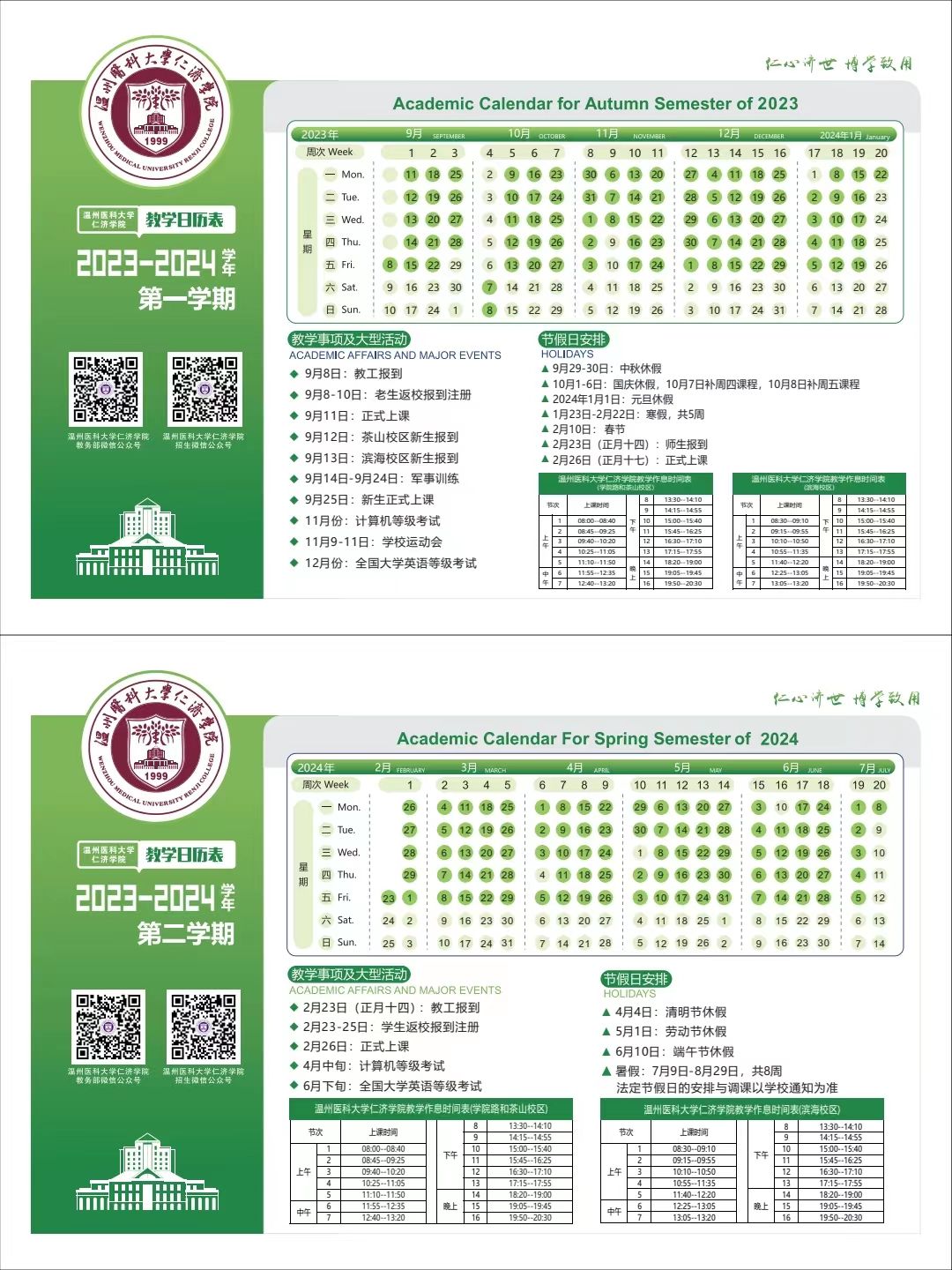 三亿2023-2024学年第一学期和第二学期教学日历表