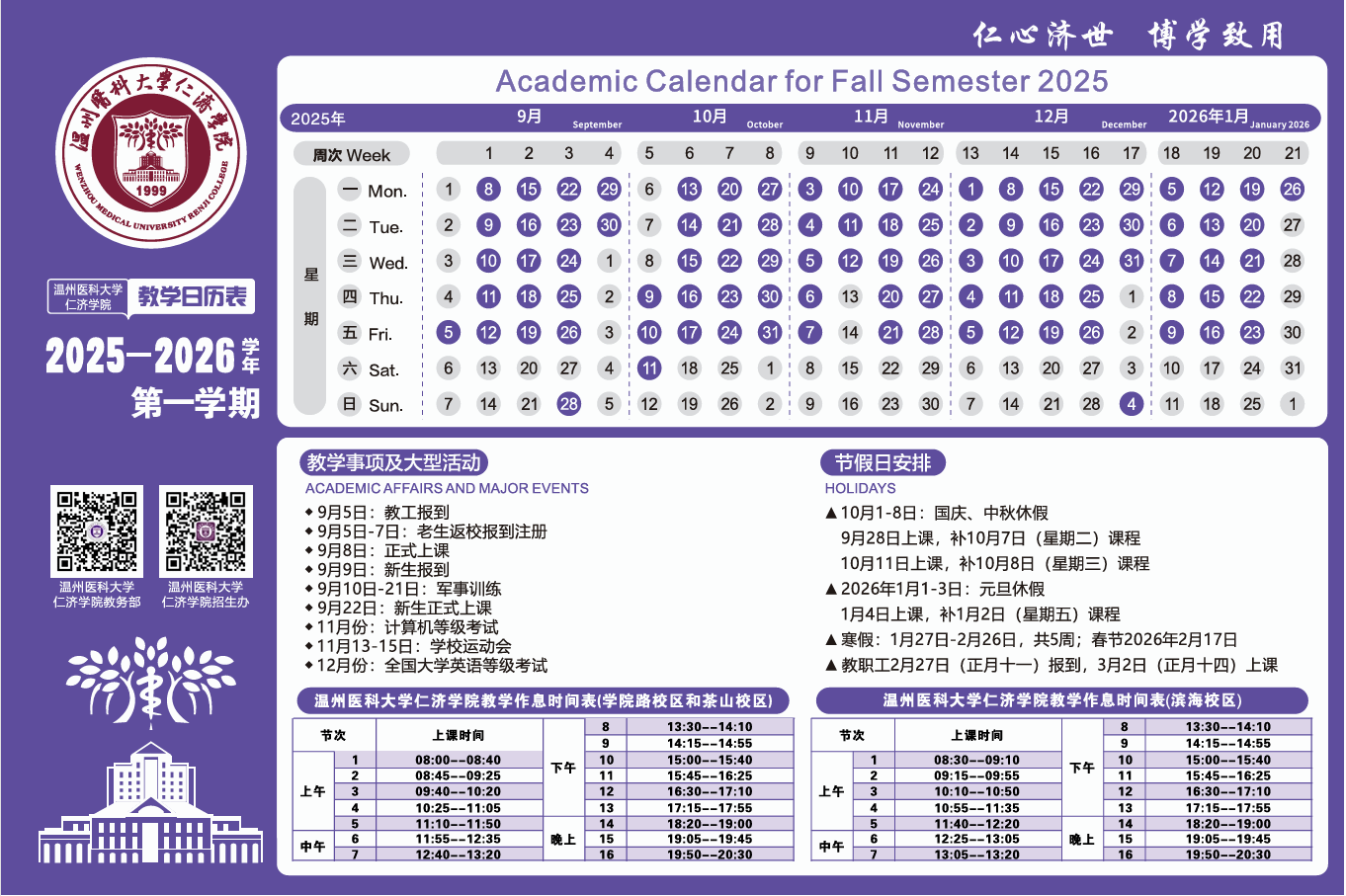 当前位置: 首页 > 机构设置 > 行政系统 > 教务部 > 学业服务 > 教学日历 > 正文