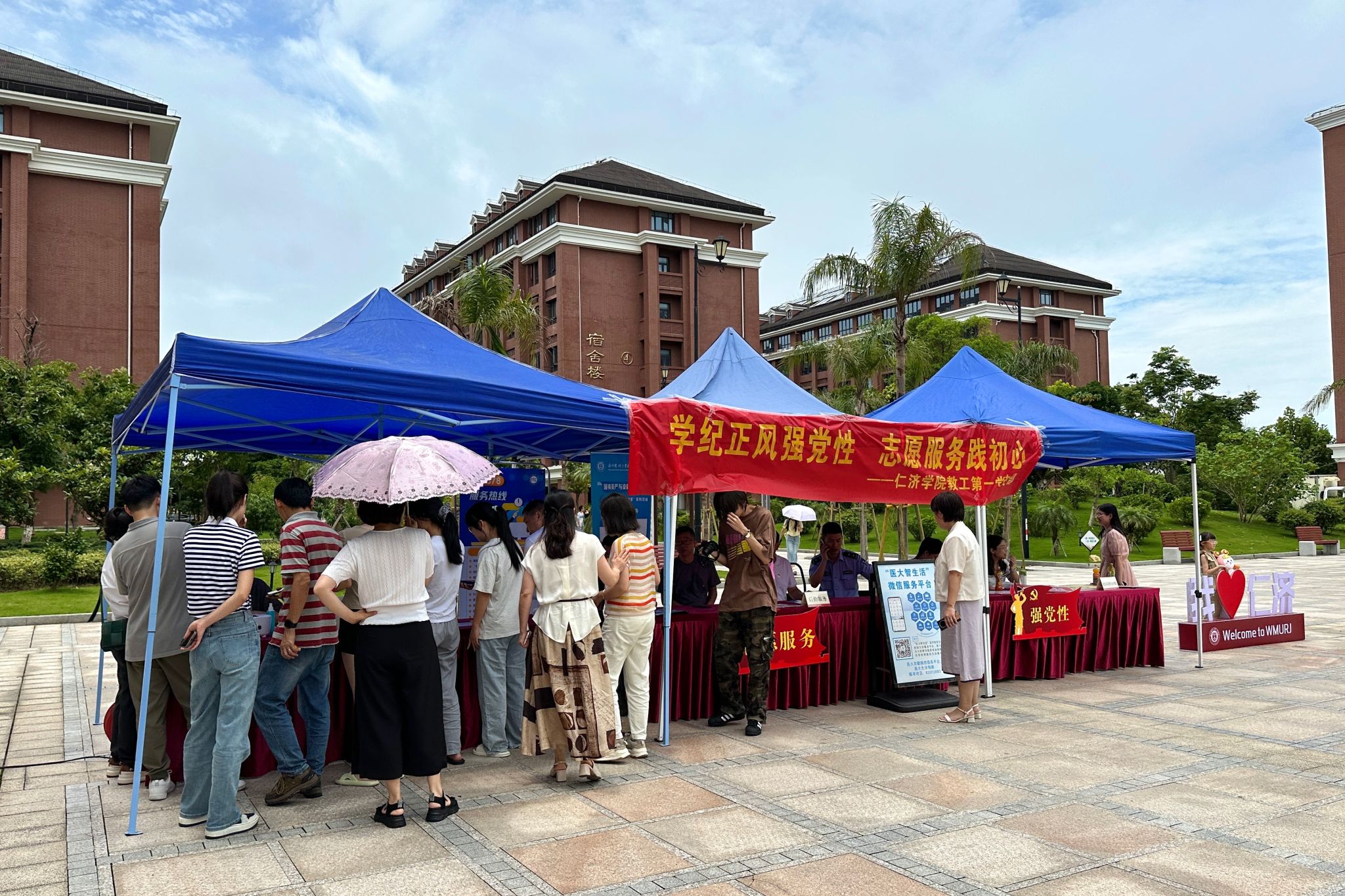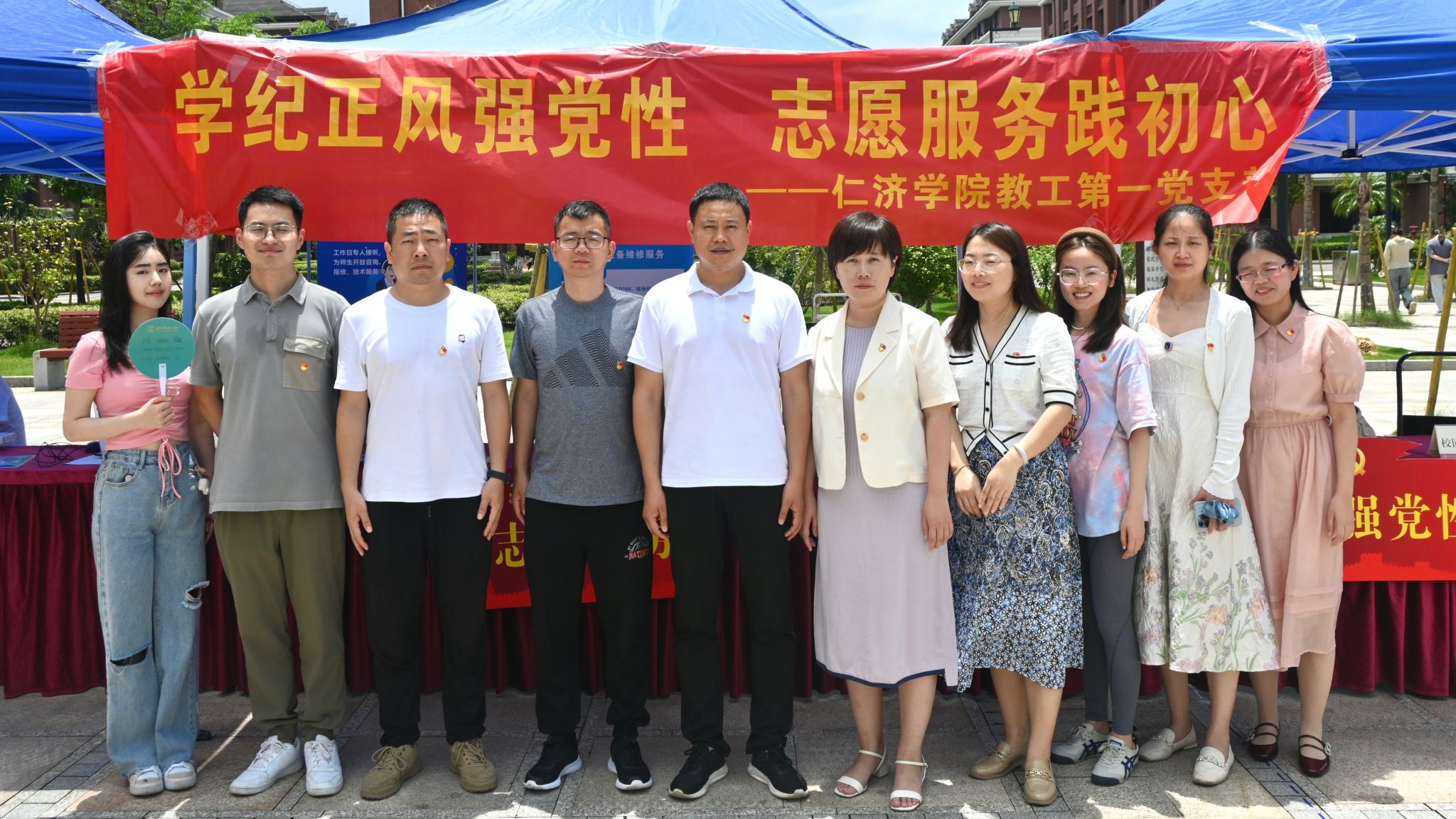 为切实增强党员风险意识,践行服务宗旨,弘扬志愿精神,加强服务型党组织建设,充分发挥党员的先锋模范作用,6月25日,仁济学院教工第一党支部在滨海校区汇源楼门口开展“学纪正风强党性 志愿服务践初心”主题党日活动暨志愿服务活动。