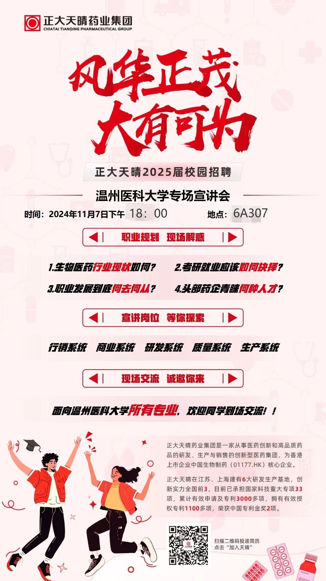 正大天晴2025届校园招聘温州医科大学专场宣讲会