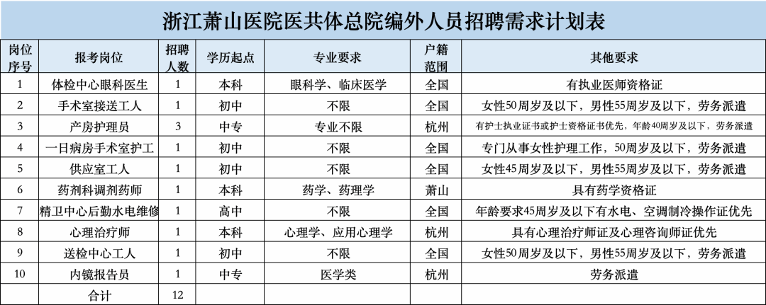 招聘详情及附件下载:关注!浙江萧山医院医共体总院公开招聘编外工作人员公告