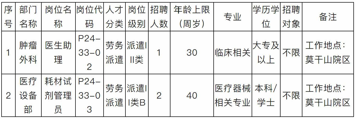 因工作需要,本单位拟公开招聘医生助理1名、耗材试剂管理员2名派遣至浙江大学医学院附属儿童医院肿瘤外科、医疗设备部(工作地点均在莫干山院区)https://zhaopin.chzju.cn/进入“应聘者入口”,请用真实信息注册账号、填写简历、投递志愿。也可通过搜索“浙大儿院招聘”微信公众号填写简历、提交应聘岗位。一般不接受其他方式报名。每位应聘人员限报一个岗位,“投递志愿”以第一志愿为准,其他志愿为备选志愿。仅注册、填写简历,不应聘岗位视作报名无效。请在“个人中心”-“投递记录”中查看第一志愿岗位为“已投递”状态,应聘者应对自己所提供资料的真实性负责,凡弄虚作假者,取消应聘资格。gh_a42ae308a32d