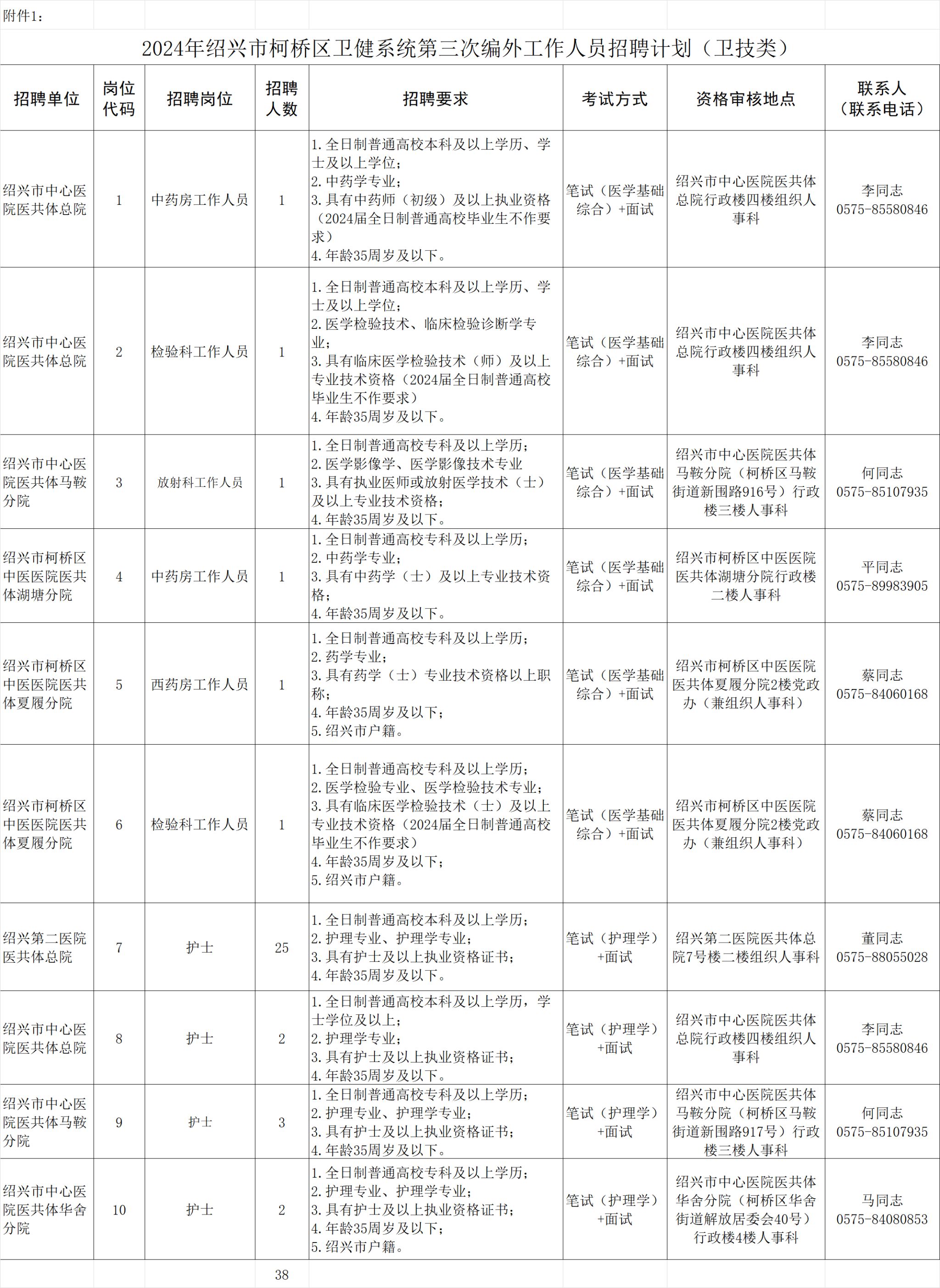 医护招聘|大专可报|2024年浙江绍兴市柯桥区卫生健康系统第三次招聘编外用工人员53人公告2024-10-23