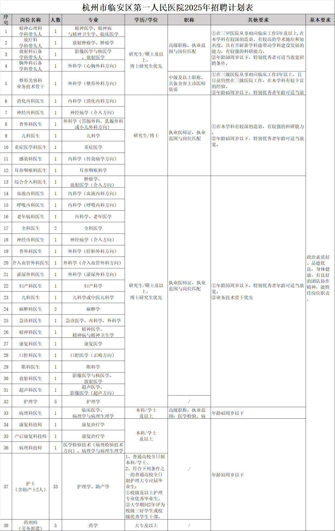 医护招聘|户籍不限|杭州市临安区第一人民医院招聘80人2024-10-12